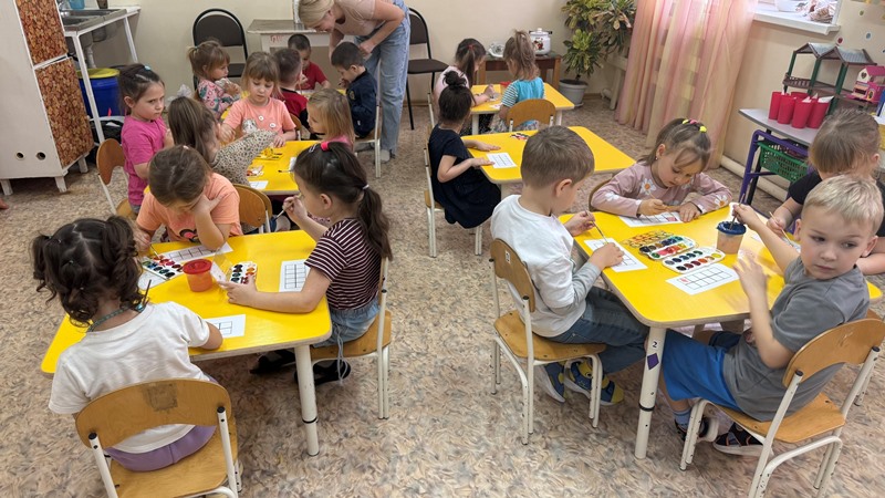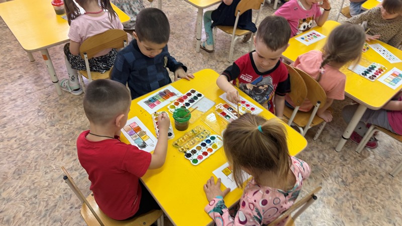 1. Сортировка: Дети работали с шаблонами, аккуратно заполняя клеточки только теплыми или только холодными оттенками.