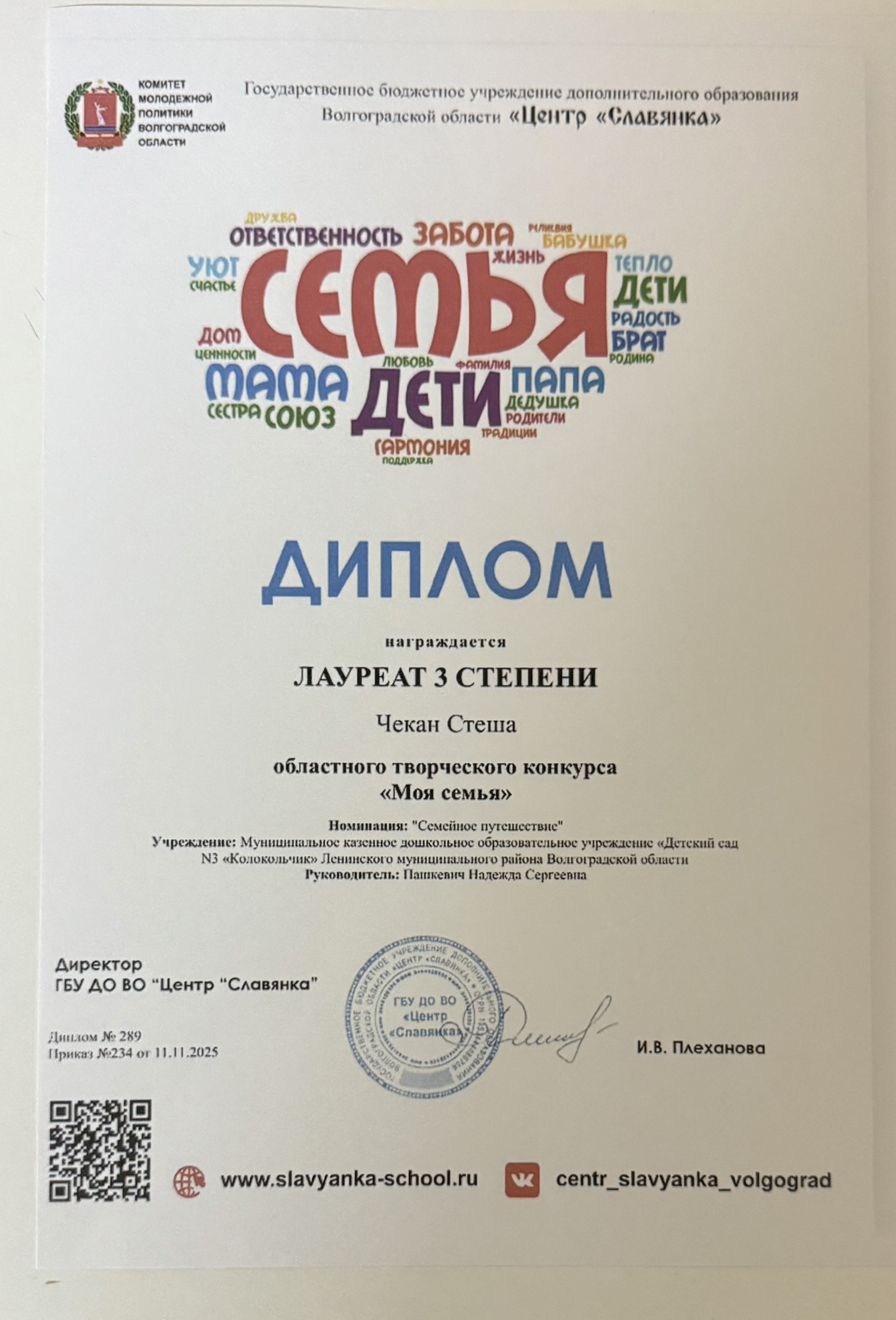Поздравляем наших победителей! В областном творческом конкурсе: «Моя семья»! В номинации: «Семейное путешествие».